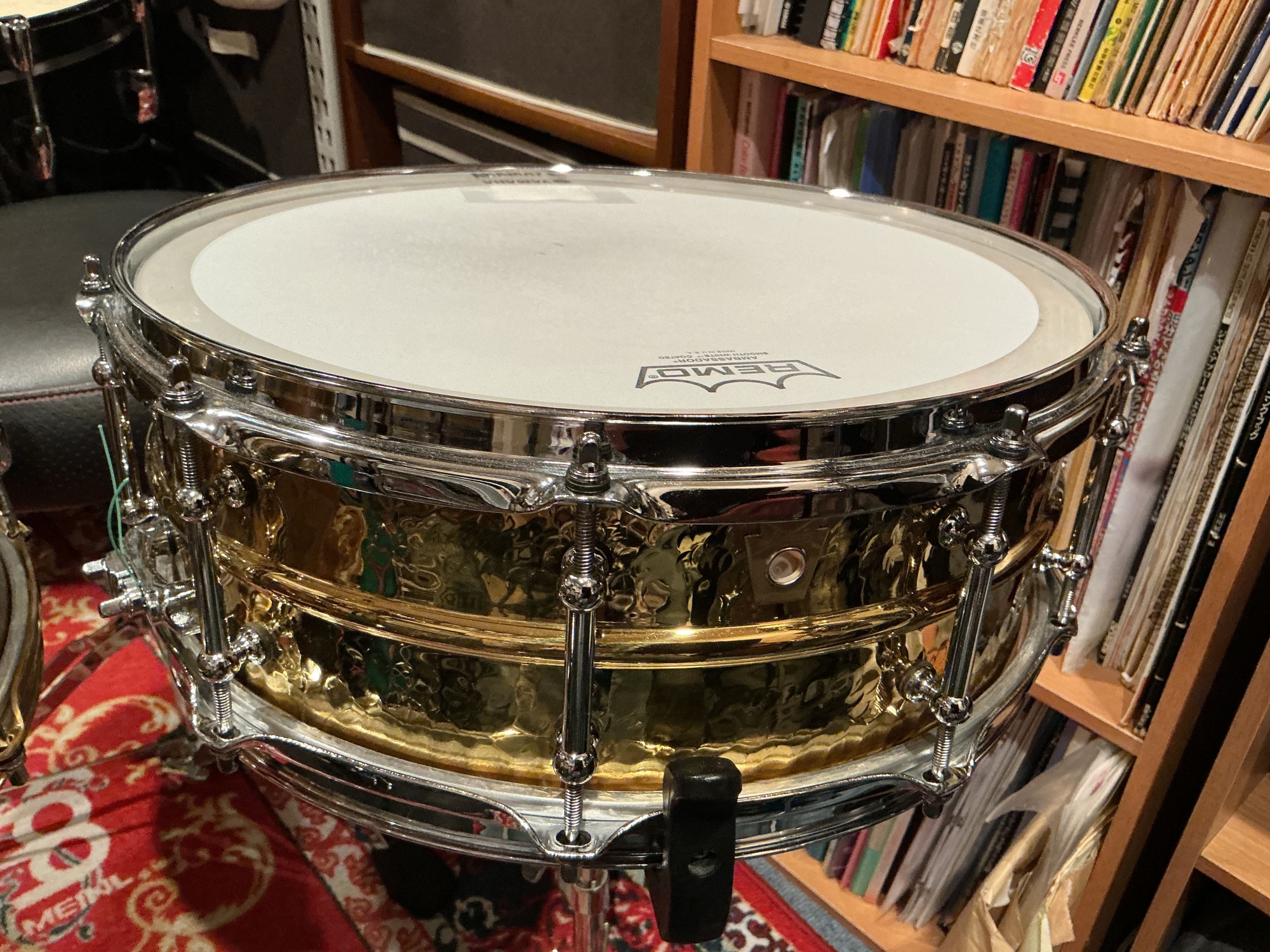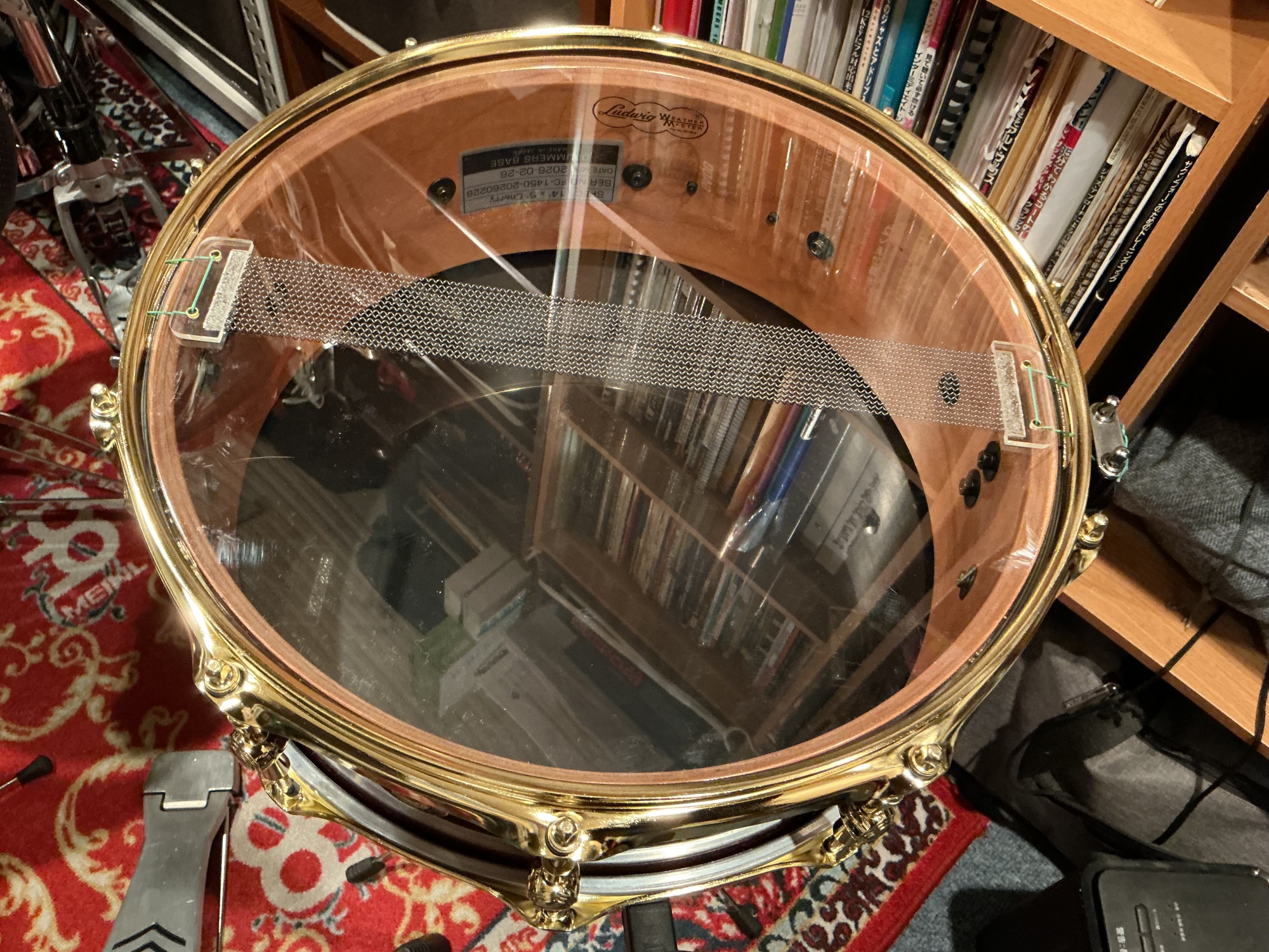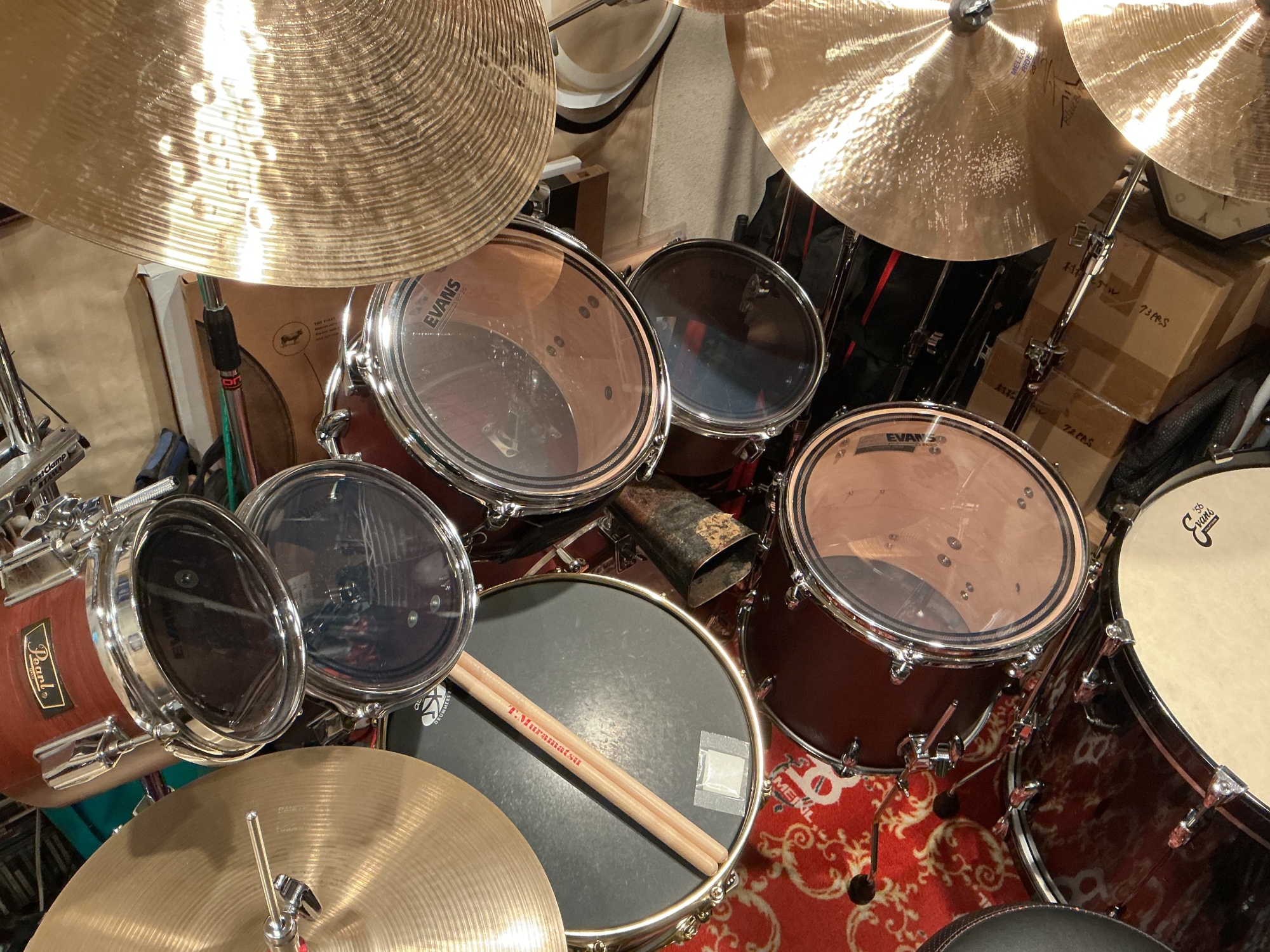 先日お邪魔したみのぶちゃんのスタジオのドラムに貼ってあったEVANSのヘッドがなかなか良かったので真似してみました(笑)