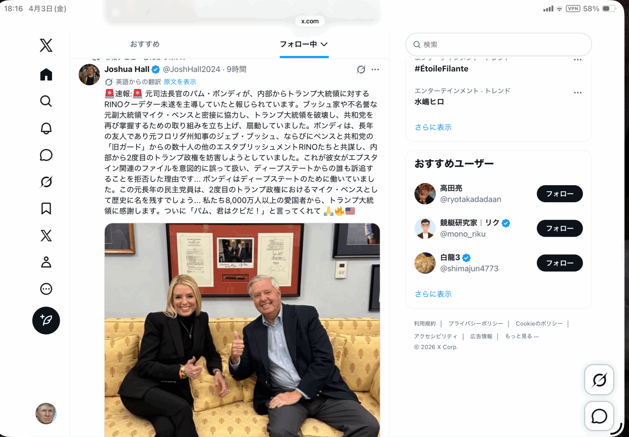 パム・ボンディ解任の理由については貼っておきます。