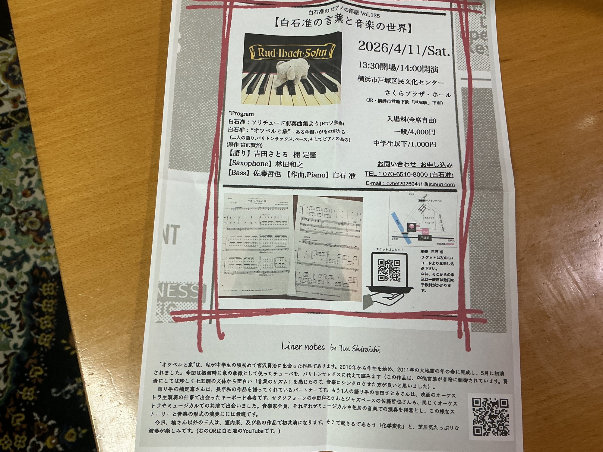 土曜日は白石先生のコンサートに行きます。